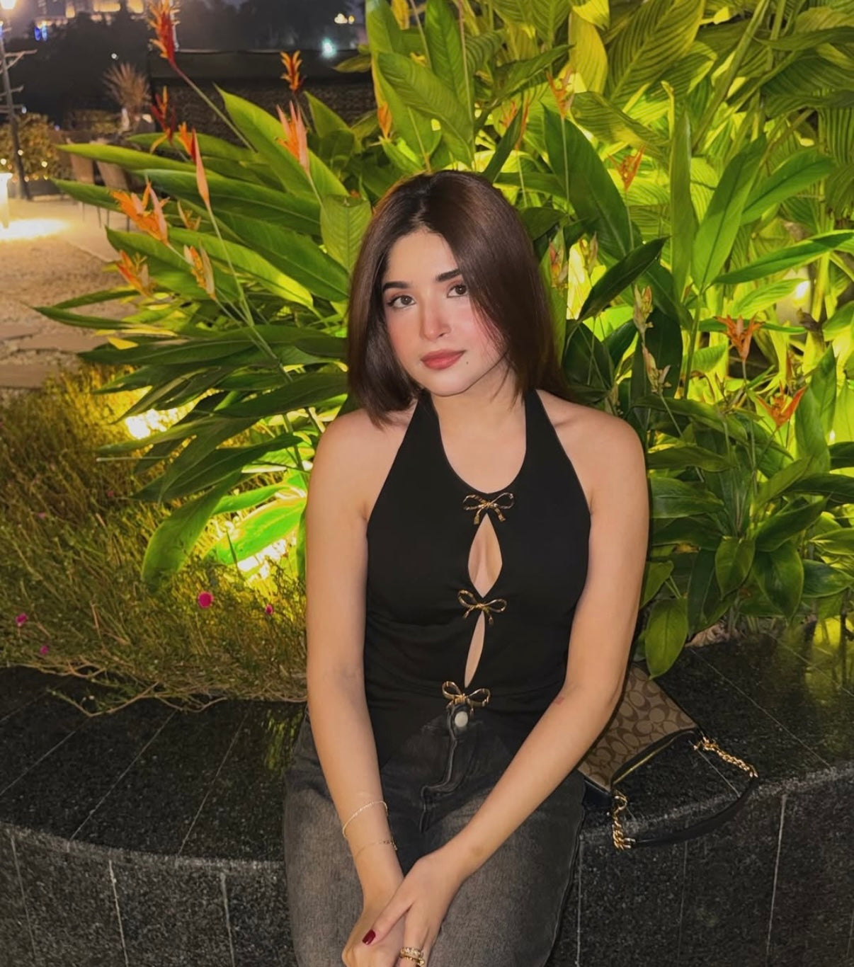 DETAIL : Stretchable fabric, Metal bows on the front, Halter neck design, Extremely comfortable and pretty top.